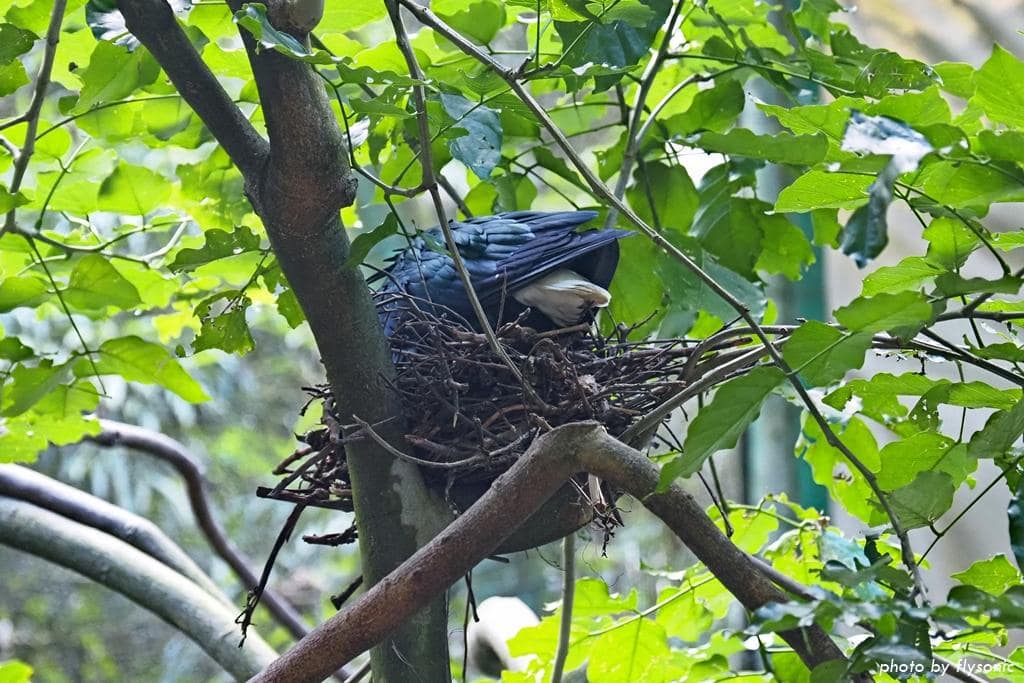 抬頭一看,樹上有幾個鳥巢,綠蓑鴿在孵蛋呢!
