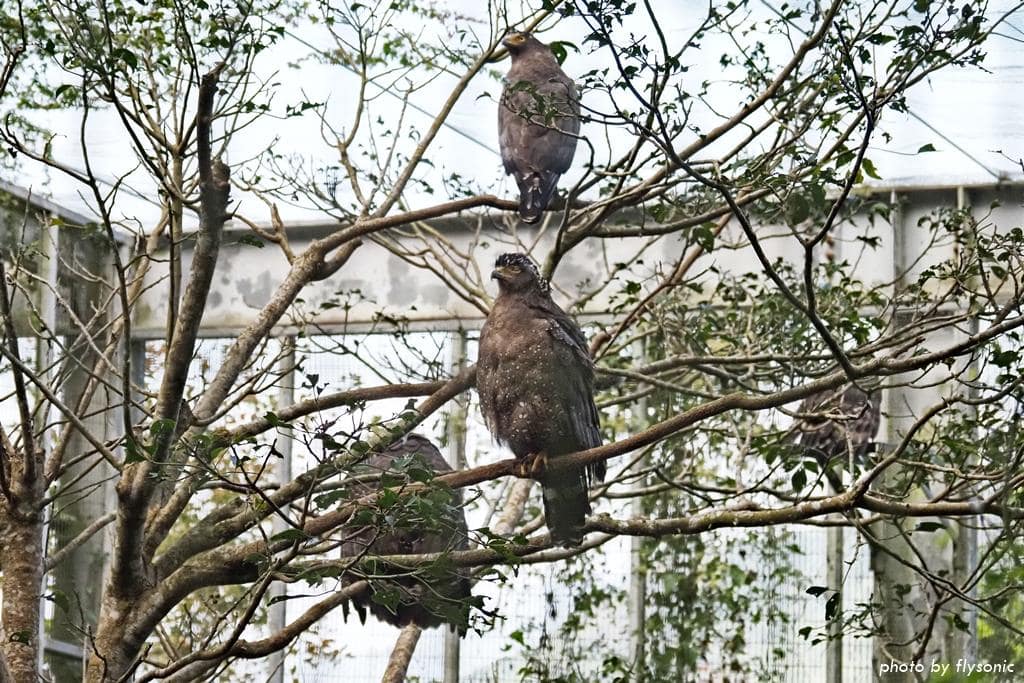 猛禽區裡飼養老鷹。雖然是老鷹卻沒有雄赳赳的氣勢,因為他們都是受了傷的老鷹,被救援後評估無法再放生野外,就收留在鳥園。