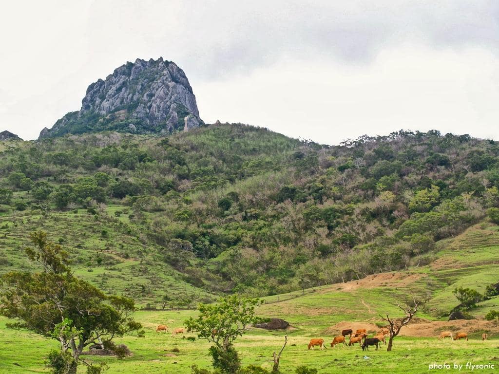 大尖山(大尖石山)是墾丁的地標,雖然海拔只有 318 公尺,但是由於四周的地形平緩,顯得它特別高聳。從不同的角度看,還會發現它呈現不同的形狀,很有意思。從墾丁牧場看大尖山,像是一個雞冠,從鵝鑾鼻公園看,就變成一只尖尖的角,大尖山的名稱就是這樣來的。