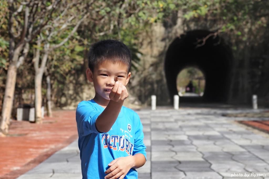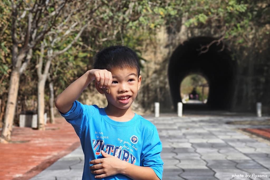 兒子走進隧道後覺得好興奮,涼風徐徐,不知不覺得就跑了起來!