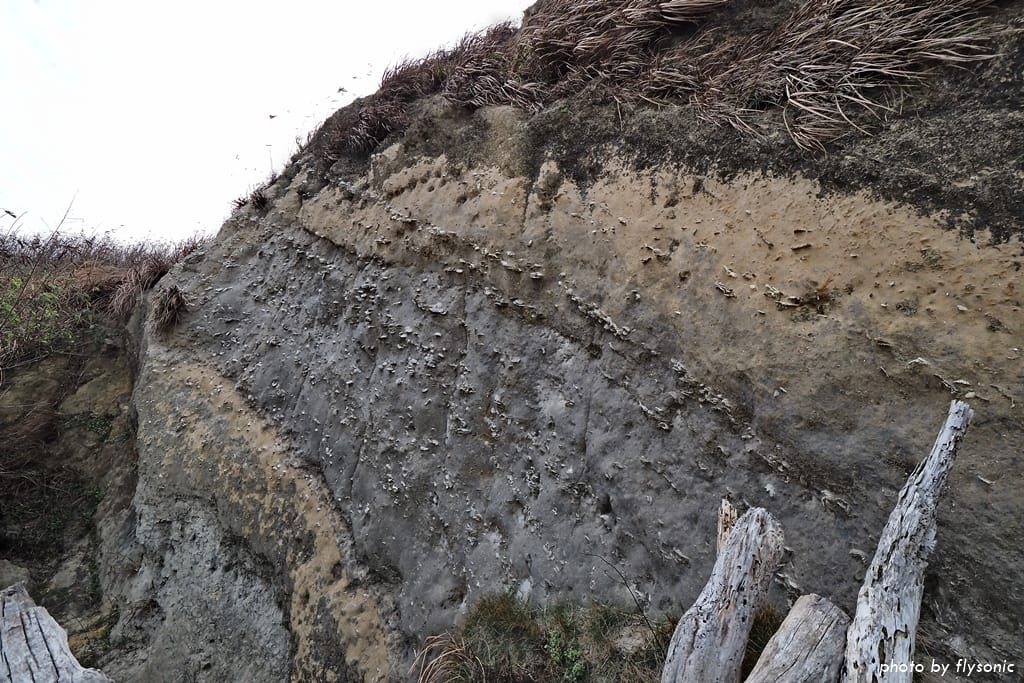 像這樣裸露在外,沒有任何保護裝置的貝化石層,非常容易遭受天然或人為的毀損,如果不加以重視,幾年後一定會消失,再也看不見,可惜了這一處特別的自然景觀。
