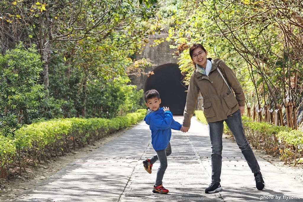 隧道前方有設置一座小型停車場,周圍的環境整理得相當整齊,路面平坦容易行走,推車或輪椅都沒有問題,途中也有長椅、涼亭可供休息。