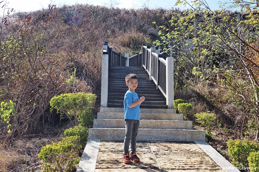 後來才知道,在 1 號隧道口旁邊的這條階梯通往另一個有立石碑的貝類化石層,當天我們並沒有走上去。