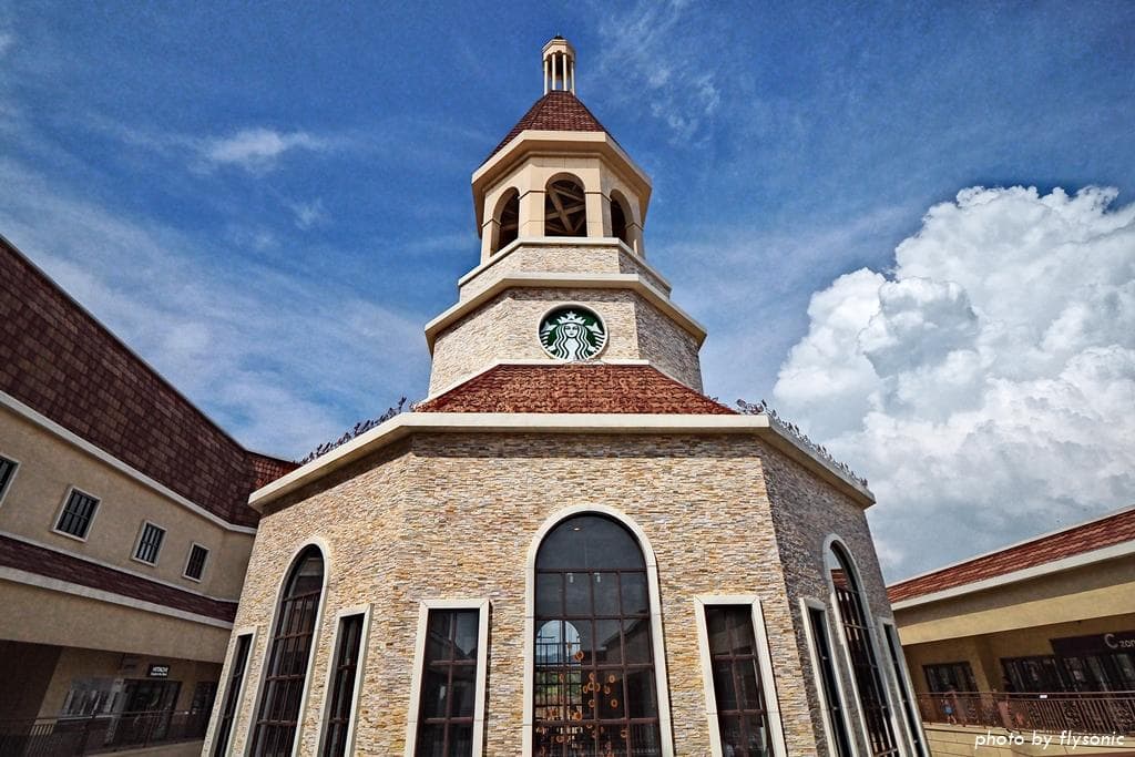 ▲接著來到有「最美星巴克」之稱的麗寶星巴克鐘樓。這是全台第一座歐式八角造型鐘樓的星巴克門市,外觀真的很特別。