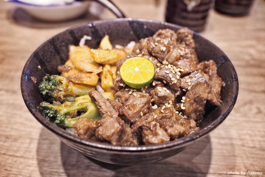 ▲看了一下菜單,原來店家的招牌是握壽司跟生魚片。可惜我們今天不吃生的,所以就點了一份紅酒骰子牛肉丼飯。