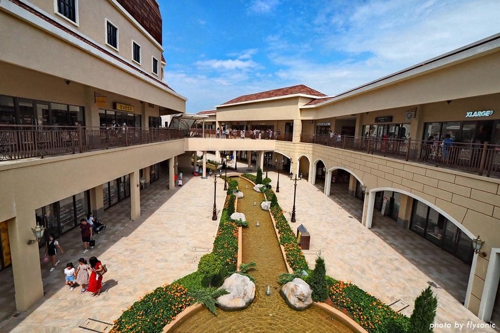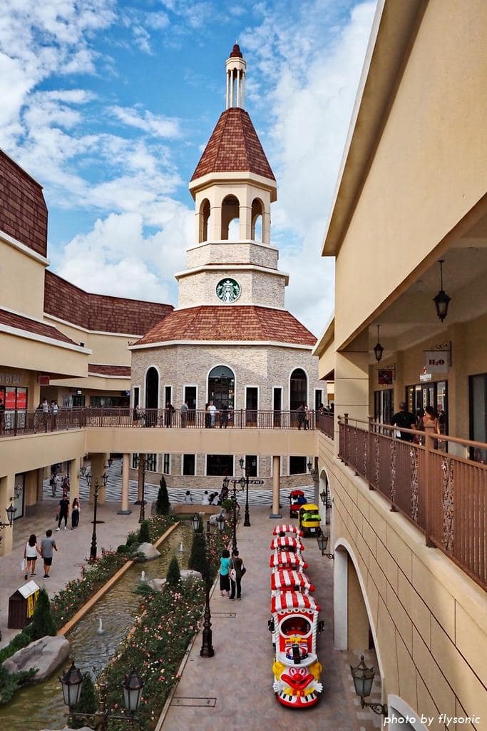 今年(2020)一月份才正式開幕的麗寶樂園 Outlet Mall 二期,跟一期的感覺很不一樣。這裡試圖呈現歐洲小鎮的風情,把鐘樓、運河、噴泉等都搬進來商場,整體建築有種台式歐風的格調,其中星巴克鐘樓、科莫湖音樂噴泉是最特別的景物。