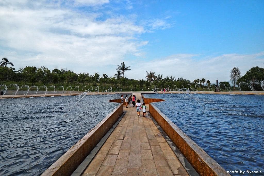 ▲音樂開始後,水柱隨著音樂搖擺,噴發出千變萬化的線條,牢牢的吸引住所有人的目光。走到中間圓形凹處,還會被出其不意的水柱噴濕,有趣極了。現場有幾個小朋友來回奔跑著,享受被水柱噴灑的樂趣。