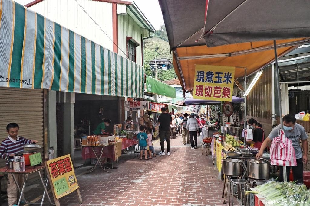 ▲老街上販賣各式各樣的小吃、農特產,也有幾間餐廳。我們買了幾根玉米、芭樂,都好甜!