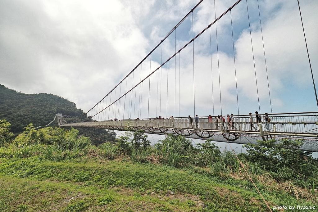 ▲回頭看長長的吊橋,橫跨山谷,真是壯觀。