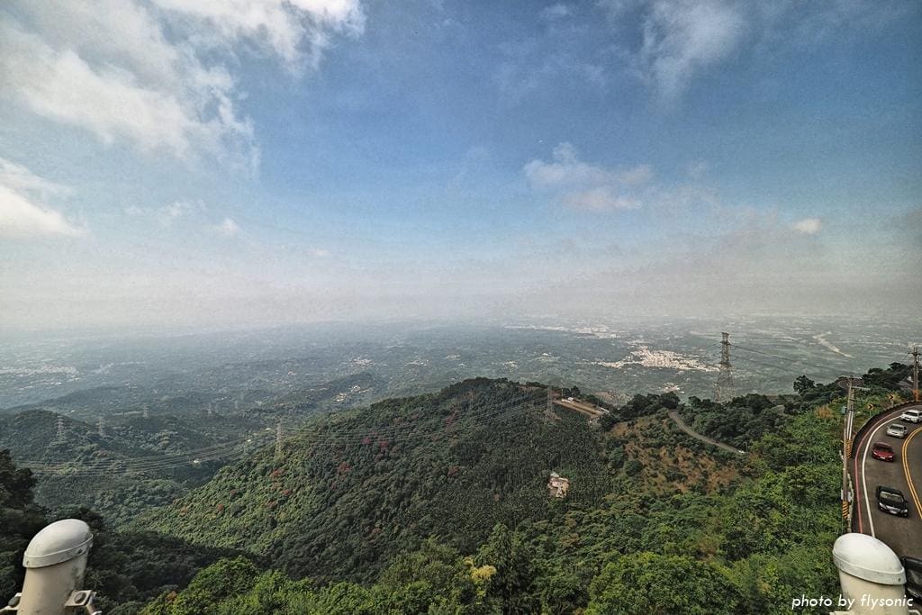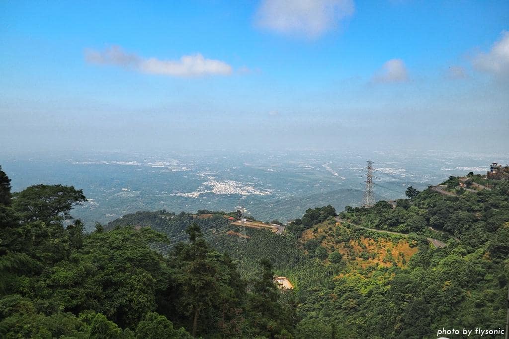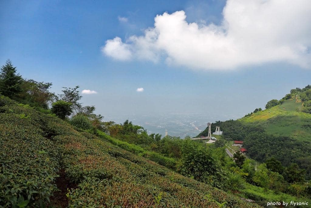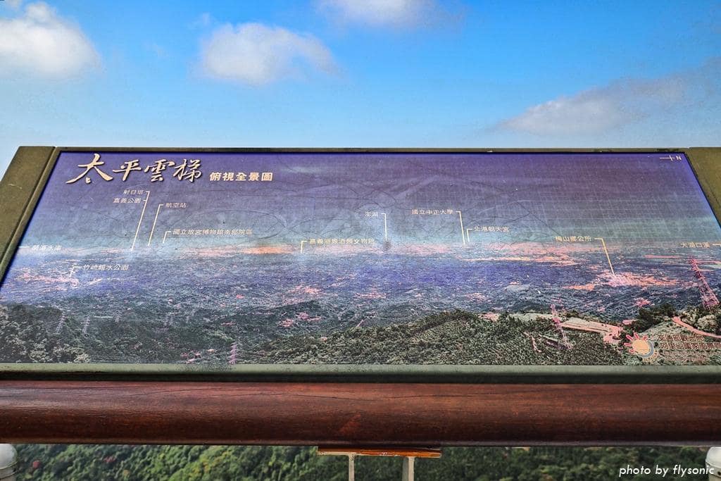 ▲吊橋上的視野遼闊,根據解說牌的介紹,遠方可以看見嘉義市區、中正大學、竹崎親水公園等景色。