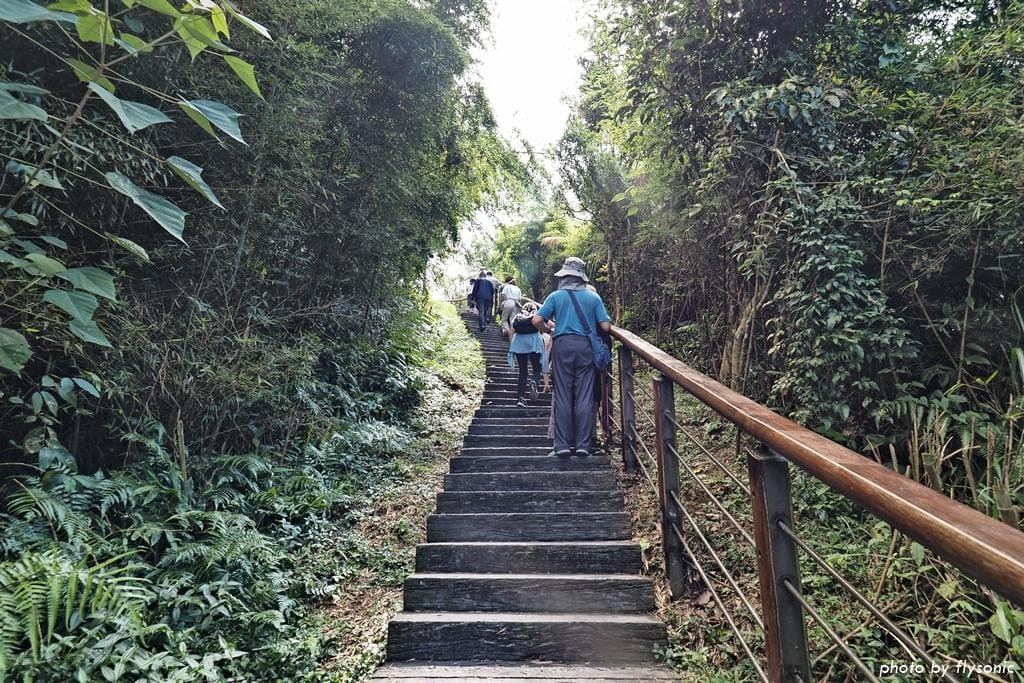 ▲氣喘呼呼的到了平台,休息一下,後面的路程會比較輕鬆。