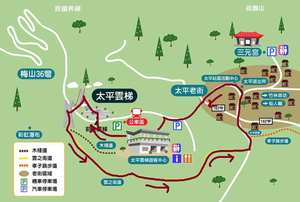 ▲(地圖取自太平雲梯官網)上圖是我們走的路線,也是大眾化的熱門路線。