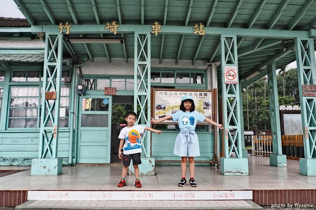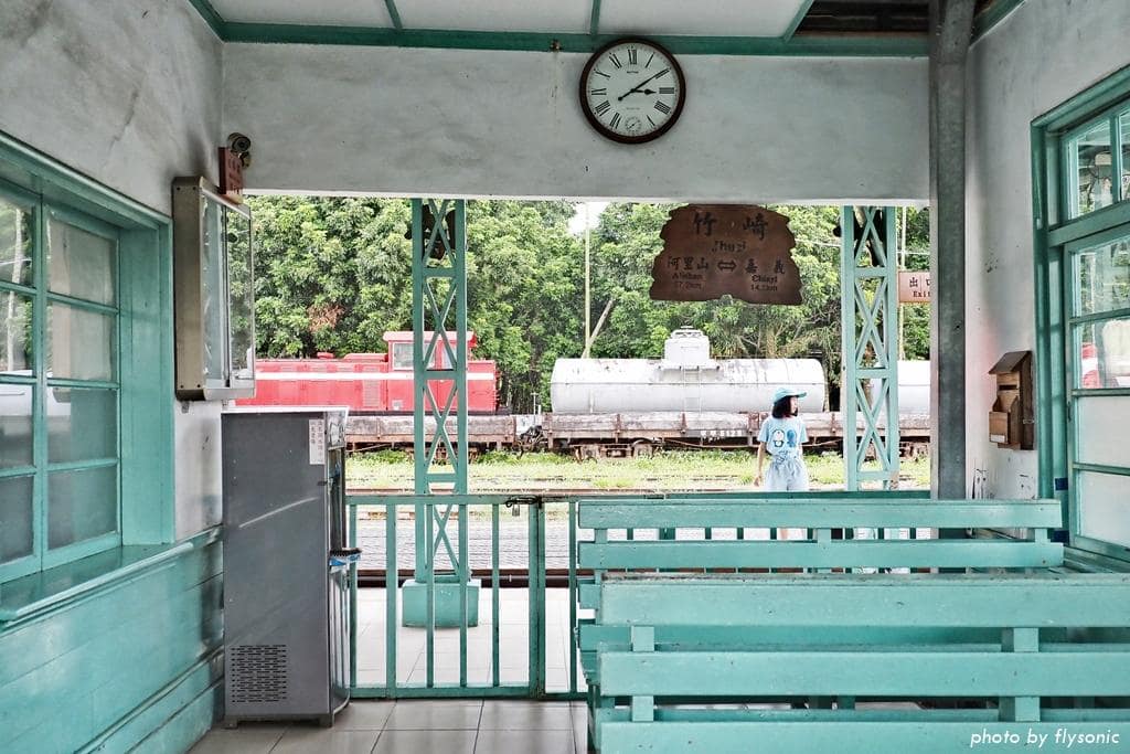 兒童戲水區正對面的竹崎車站是阿里山森林鐵路沿線最重要的停靠站之一,但是車站本身規模卻令人意外的小。車站歷史超過百年,外觀湖水綠的塗漆,要是能夠碰上紅黃色的阿里山小火車進站,就會有漂亮的對比,加上二者都有濃濃的古早味,是攝影人喜歡的元素。