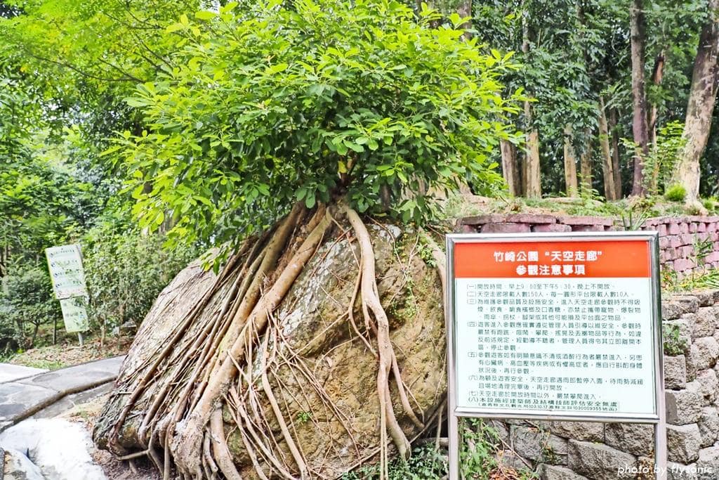 ▲走上天空走廊之前,女兒發現這裡也有一棵樹抱石(根抱石)。