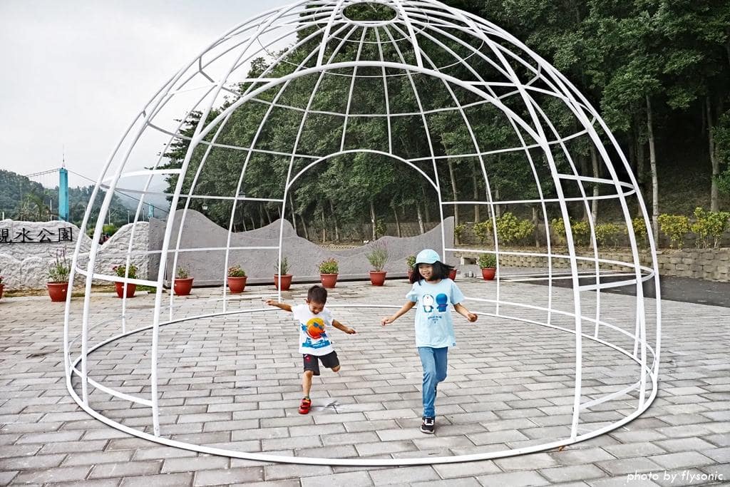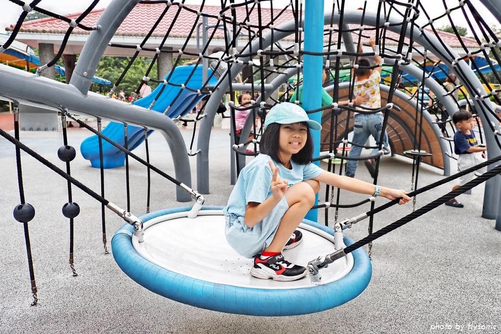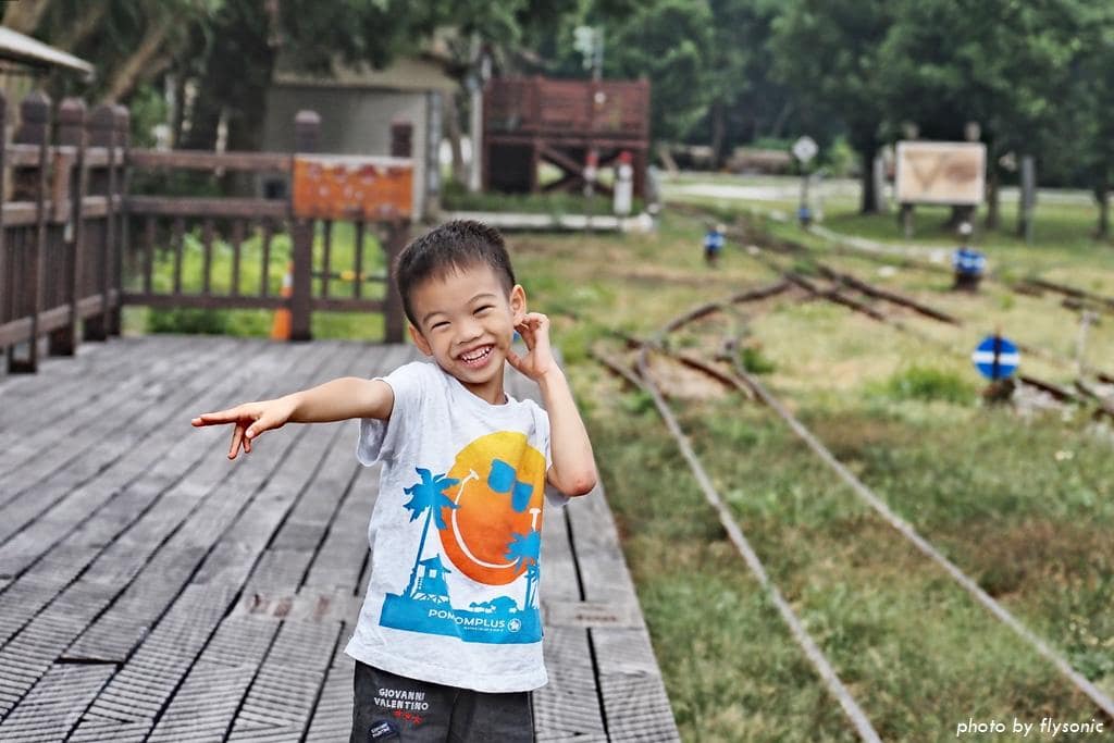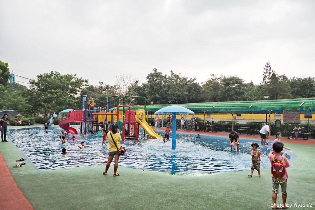 ▲參觀完竹崎車站後,走到對面的竹崎親水公園兒童戲水區。這裡有沙坑、各種遊樂器具,還有戲水池,小孩愛得不得了。
