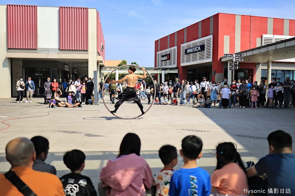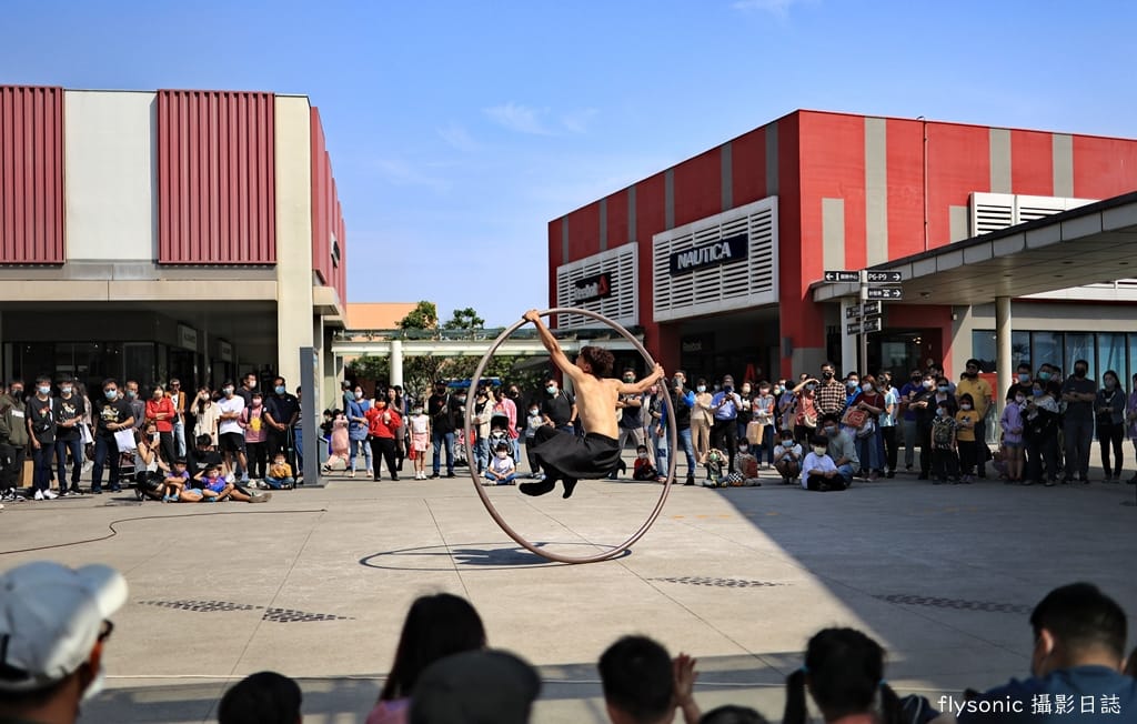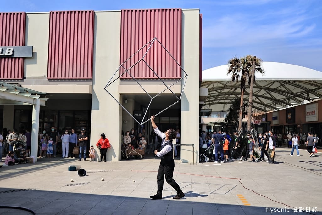 從 2 號口的佈景走出去,就會看到街頭藝人的表演。