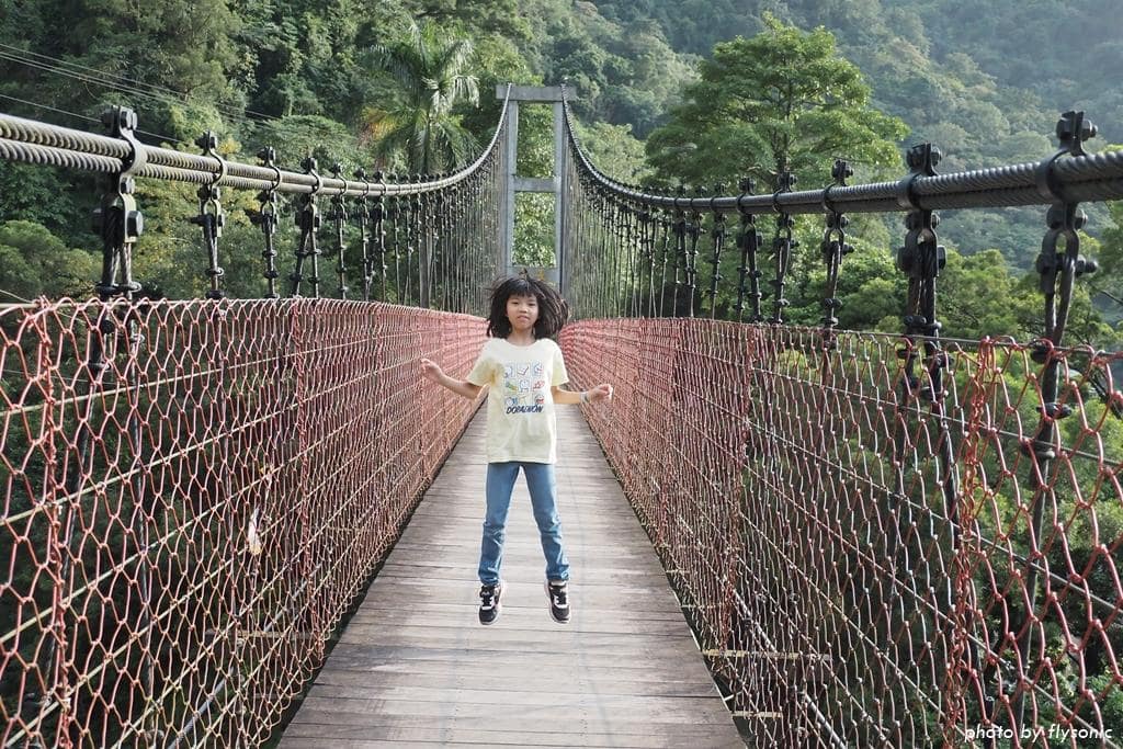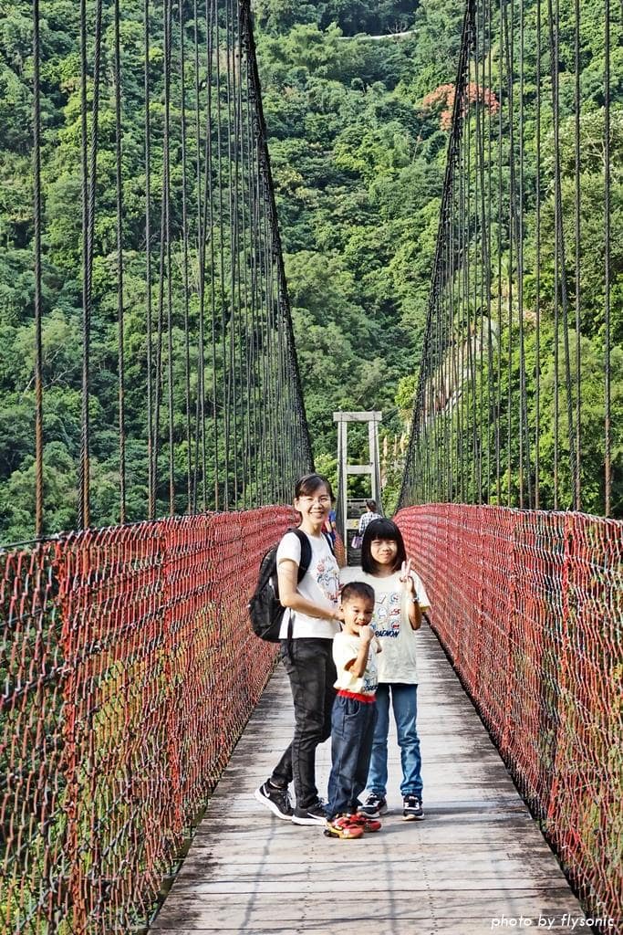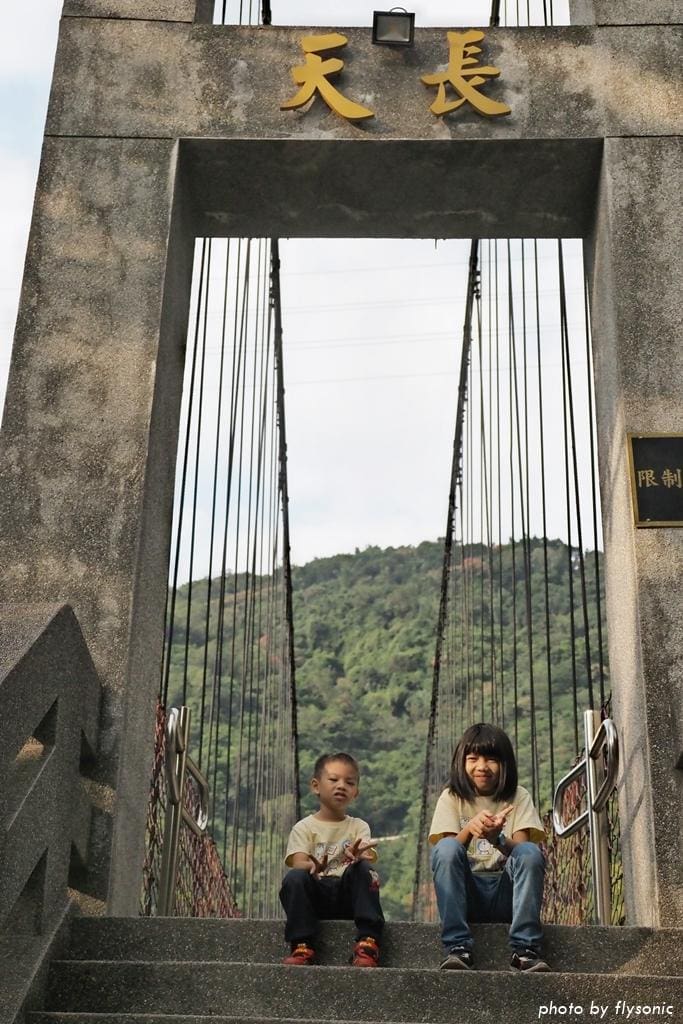 ▲天長橋的另一端有一座觀景台,要再爬一些階梯上去,可惜小孩都不想走了,我們就在吊橋上多拍幾張照片留念。
