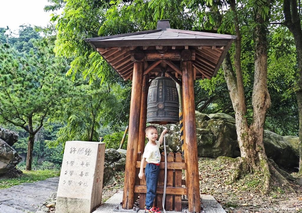 順著公廁旁的樓梯爬到許願鐘所在的平台,敲鐘可得平安、喜樂、幸福。