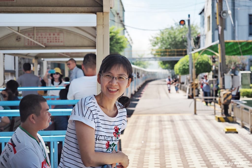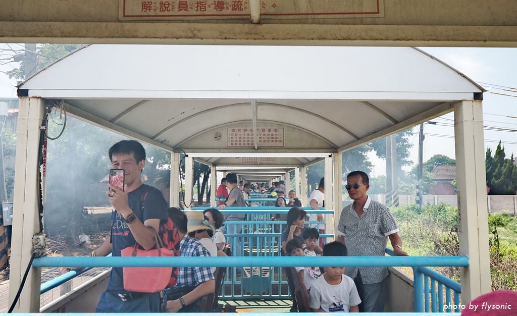 ▲黑頭仔的速度雖然慢,時速大約只有十公里吧,但是一路上都有涼風吹來,非常的舒服。其實搭小火車沒有座位沒關係,站完全程也不會感到辛苦。隨著火車上上下下,搖搖晃晃,也別有一番趣味。穿越平交道時,路上的鄉親還會熱情的跟我們揮揮手!