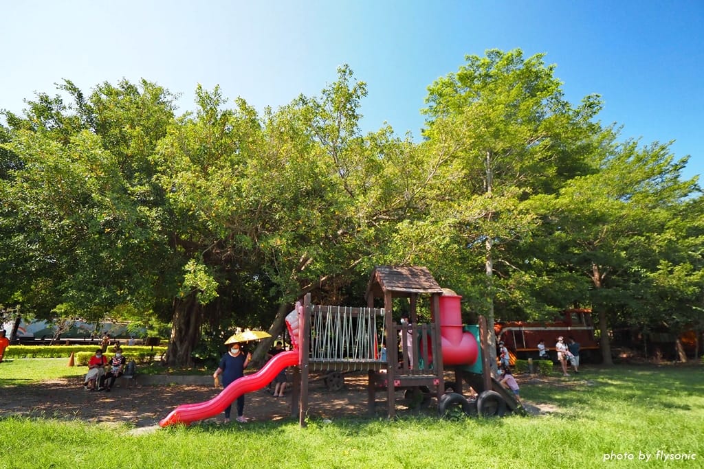 ▲糖廠後方有一區兒童遊戲區,放置溜滑梯、蹺翹板等遊具,簡單卻讓小孩玩得很開心。