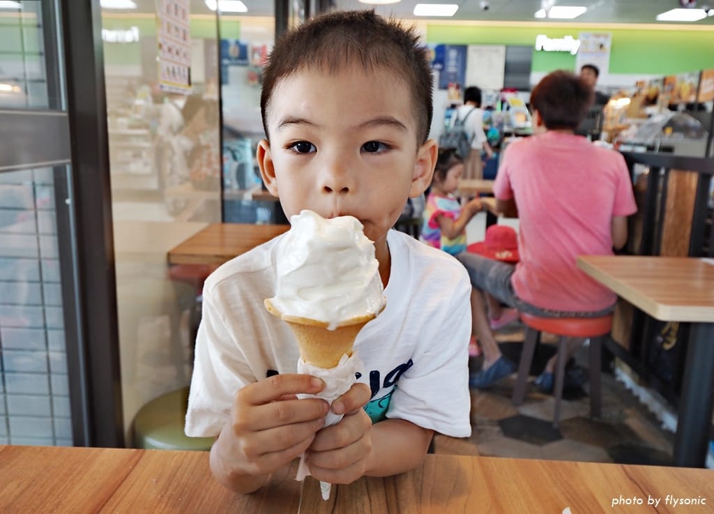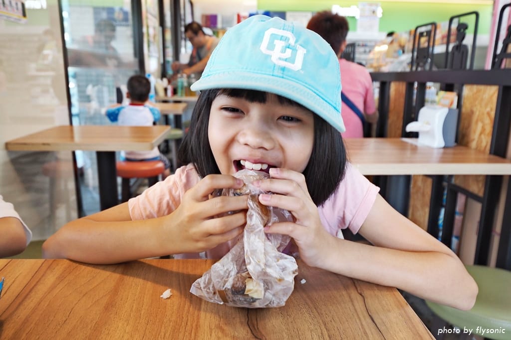 ▲跨過馬路來到另一邊好像有比較多商店。原本有一間老樹糖屋餐廳,不知怎麼的竟然倒閉了,周圍只剩下冰店、甜點店,以及一些賣蔥油餅、糯米腸的攤販,我們只好去全家便利商店買點東西吃。買一些壽司、茶葉蛋簡單吃一頓。