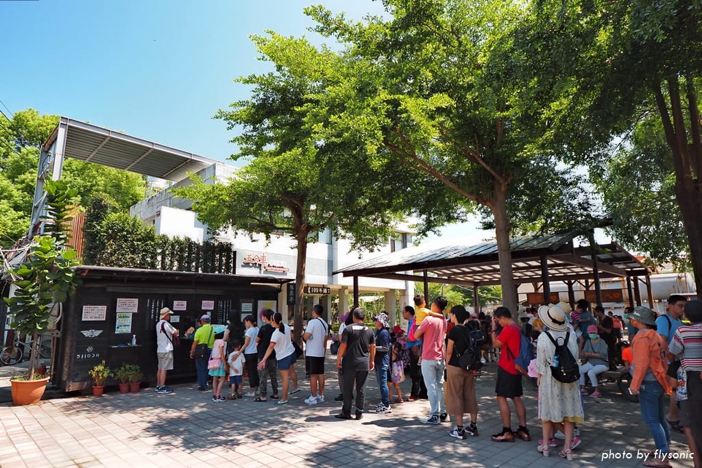 ▲我們在 10:30 到達園區,先到火車售票口一看,搭乘11點鐘蒸氣小火車的遊客已經排成一條長長的人龍。大部分都是攜家帶眷,派出一名代表買票,其他人在樹下乘涼。蒸氣火車是園區的招牌,票價比一般柴油火車貴上一些,買票時使用三倍券可以打八折。