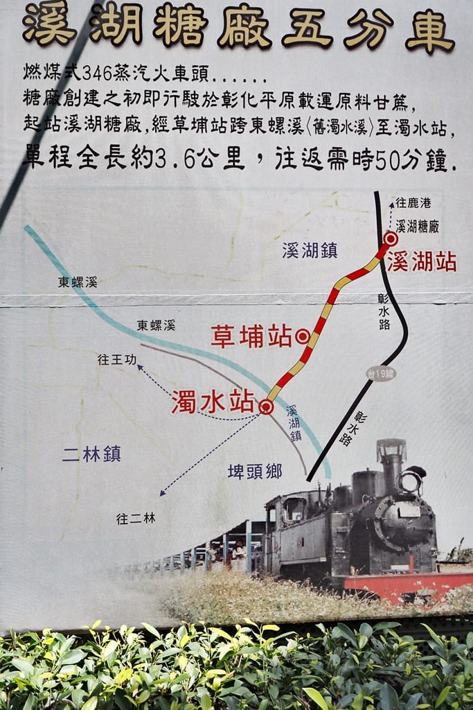 來到溪湖糖廠一定要搭乘 SL 346 蒸氣火車,因為它保存原始的鍋爐,以燃燒煤炭與木柴為動力,是台糖最原汁原味的蒸氣火車。由於糖廠的火車常態運行,使得窄軌鐵道得以完好的保存下來,成為鐵道迷來中部必訪之處。除了黑頭仔蒸氣機車之外,糖廠的倉庫擺放著各式日立牌的柴油機車,可說是一個小型的柴油機車博物館。昔日的湖糖曾經是全台產糖量最高的糖廠,從 2002年起不再製糖,然而保留了完整的製糖器械設備,相當壯觀,值得一看。不過,就像台灣許多景點一樣,溪湖糖廠擁有良好的條件,卻沒有被好好的維護提升,是非常可惜的地方。若是能夠將整個廠區重新規劃,硬體設備改良,最起碼也要把環境打掃得乾淨整潔一些,將有助於糖廠的觀光,讓更多人願意來瞭解台灣曾經輝煌一時的糖業,同時享受搭乘小火車穿梭田野的樂趣。
