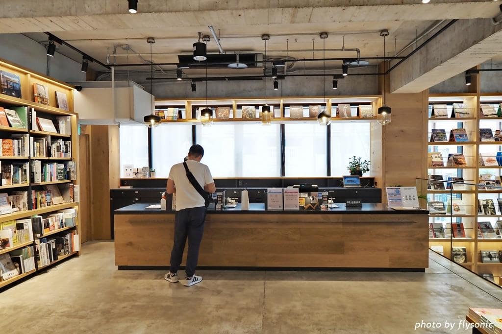 ▲書店採用大量木頭、鐵線金屬與清水模,加上光線配置,是工業風的裝潢設計。