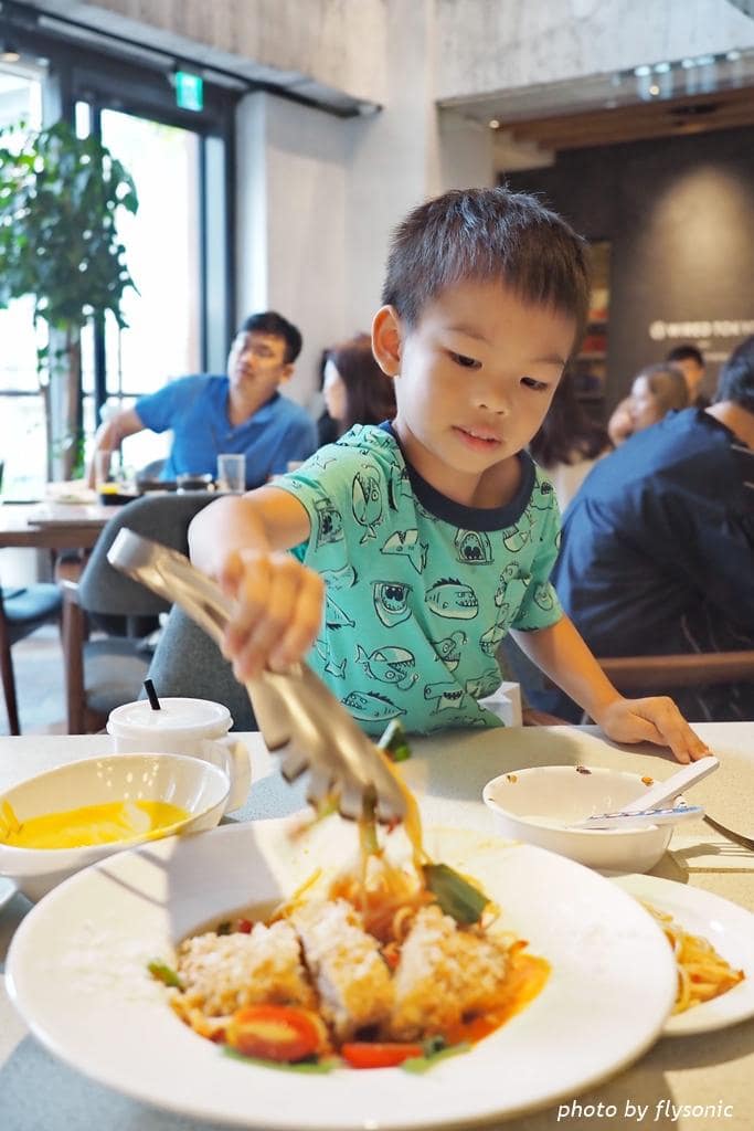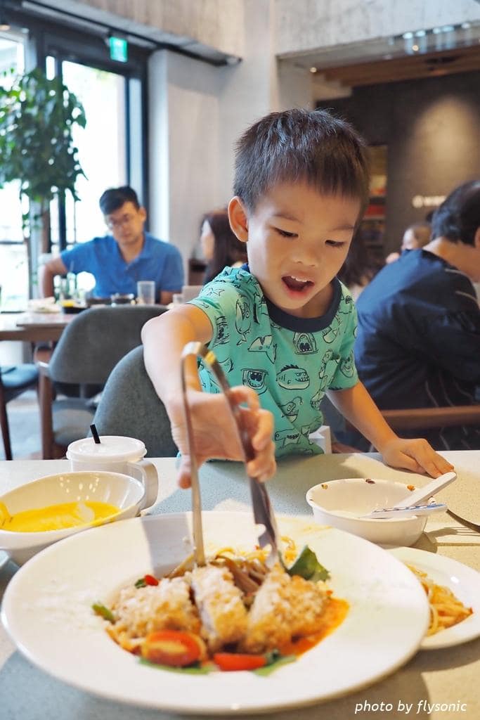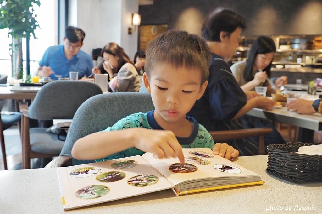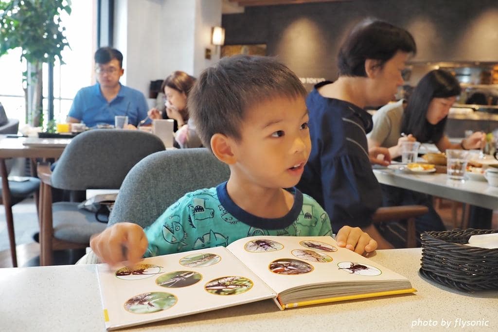 ▲餐廳的環境明亮乾淨,桌椅很好坐。挑高的空間,沒有壓迫感,用餐很舒適。小孩飯前、飯後的空檔都在看他們的新書,我也忙著拍照,完全忘了手機。