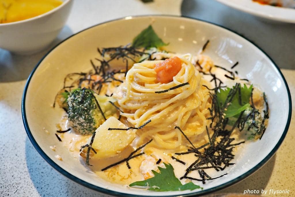 ▲第二個主餐是明太子奶油義大利麵。因為明太子的關係,麵有點辣,小孩不太敢吃,但是我覺得味道很好。餐廳給的份量不算少,吃完這盤麵,已經非常飽了。還好我沒有加點漢堡,不然真的吃不下。