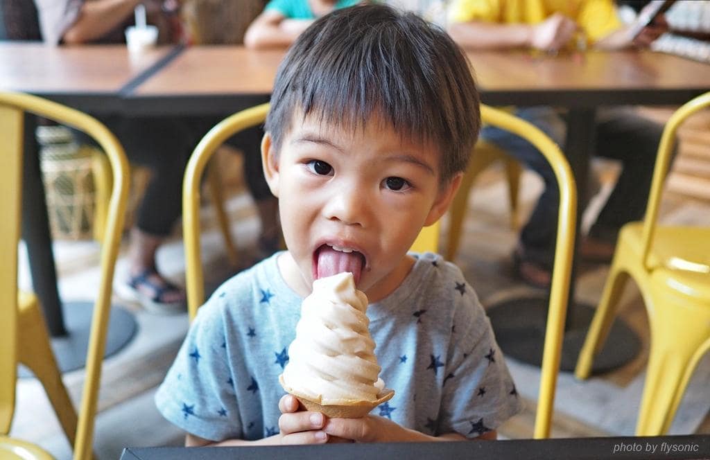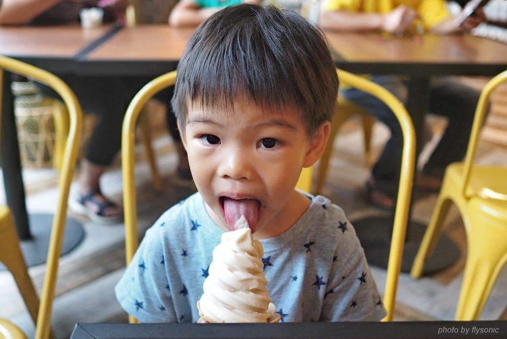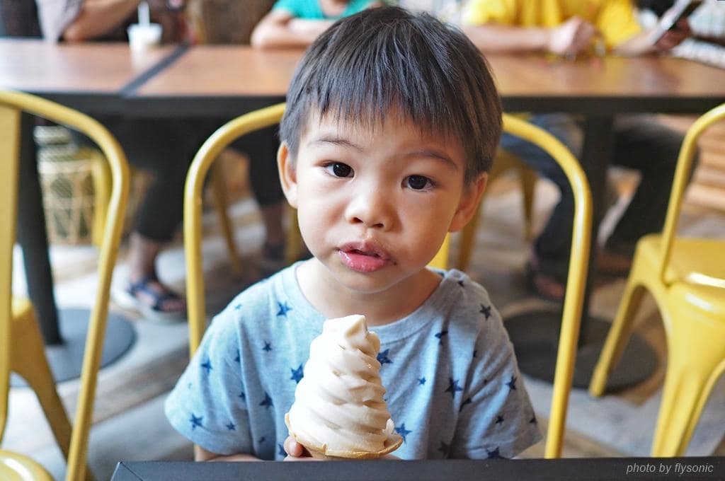 冰淇淋口感很綿密,有點像是薏仁那種穀物的味道,它就是用純米做成的,好吃!
