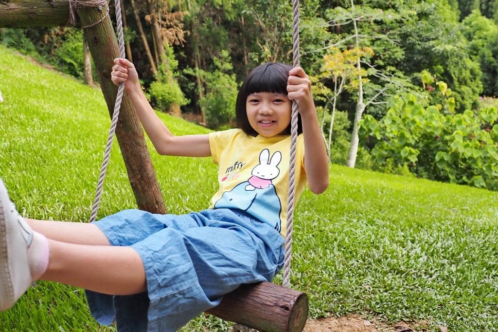 ▲面對著一片山林景色盪鞦韆,讓人心曠神怡,一點也不想停下來。