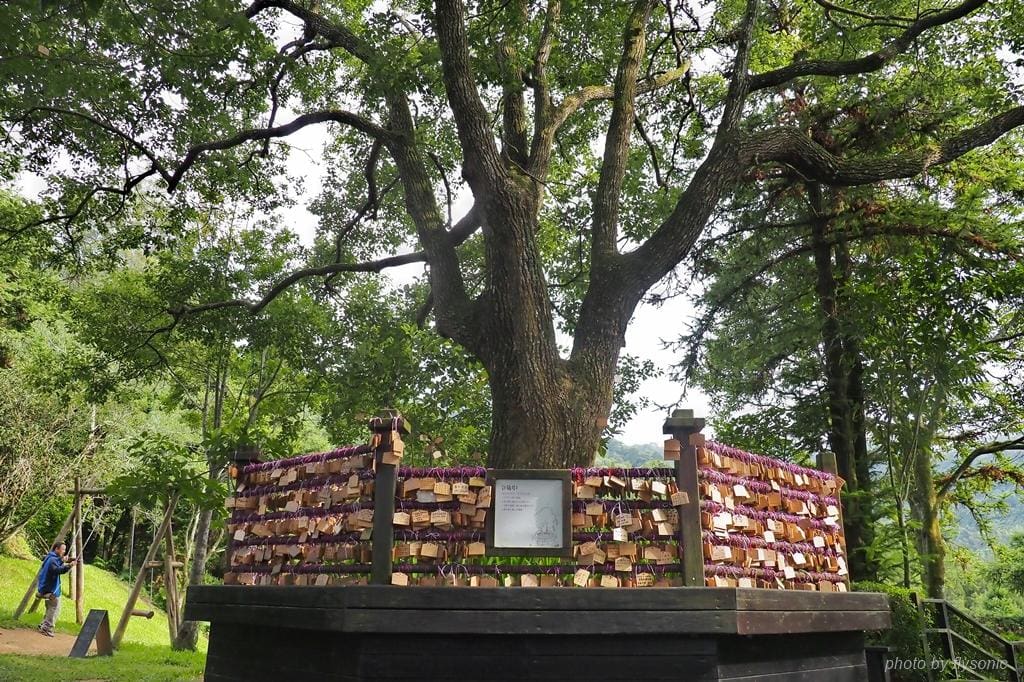 ▲鞦韆旁邊有一棵許願樹,樹上掛滿了祈福的木板,每塊木板都滿載願望。