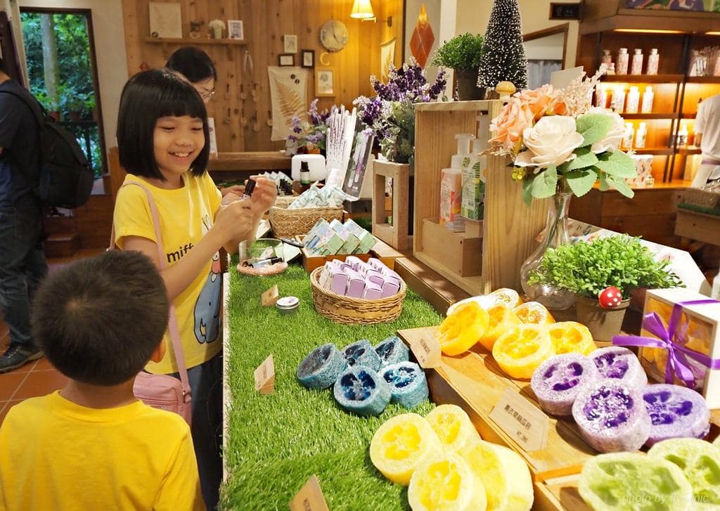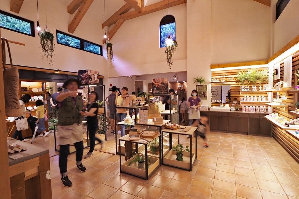 ▲森林島嶼販賣一些藺草手工編織包包、帽子,還有一些杯盤、香氛用品,都蠻有特色。商店裡面人也不少。