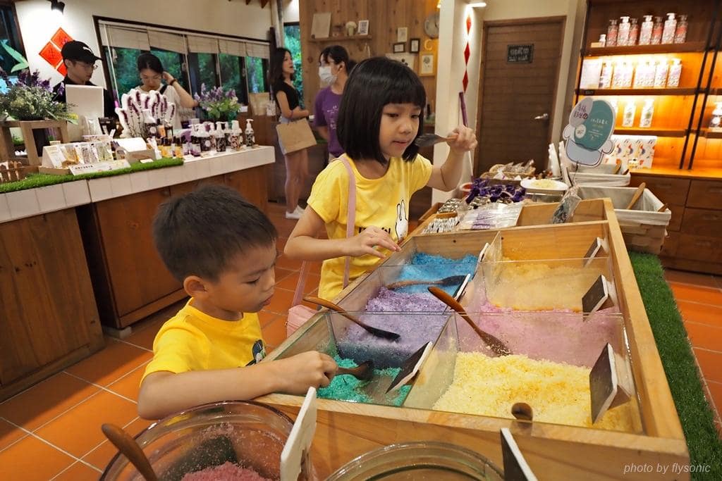 ▲小孩評比哪一種海鹽的香氣最迷人,最後由玫瑰及薰衣草勝出。