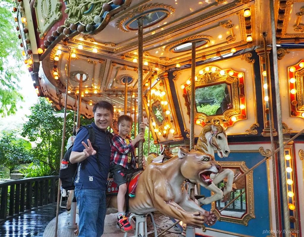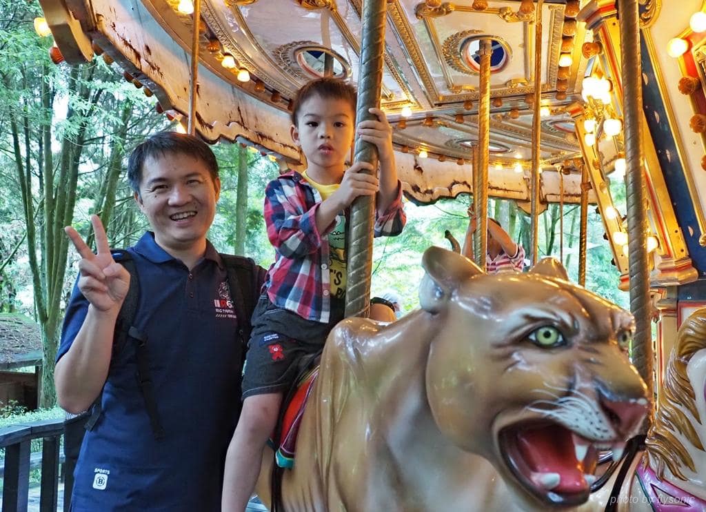 ▲各自選好自己喜歡的動物,兒子要我幫忙扶著才能搭旋轉木馬。