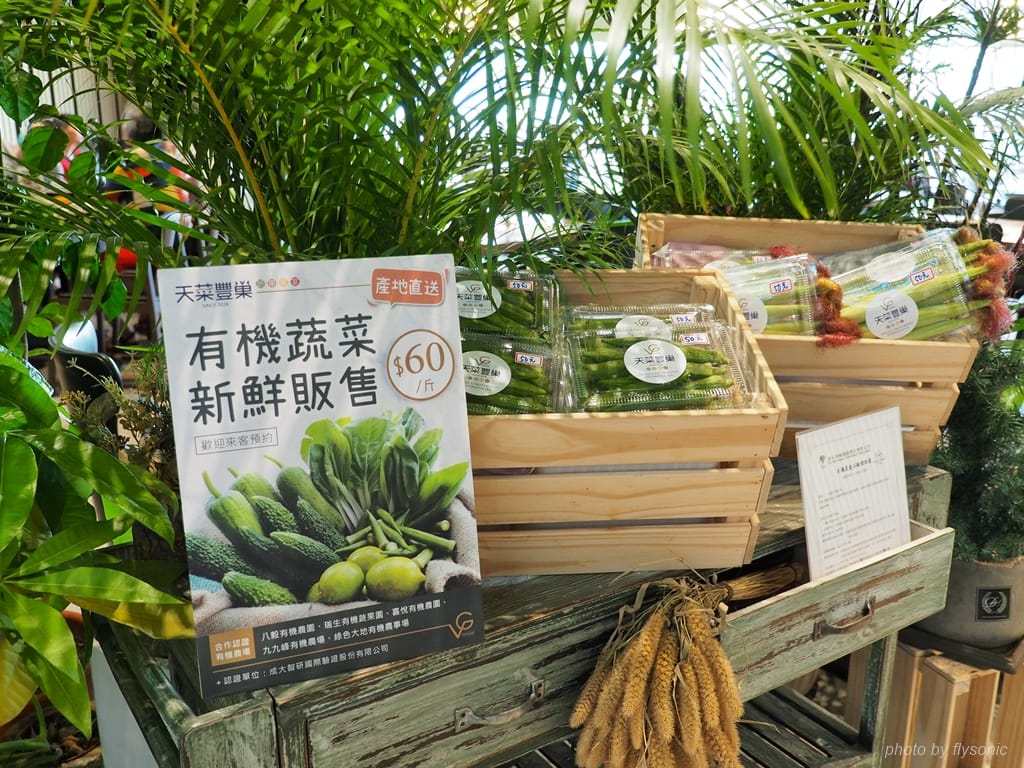 天菜豐巢素食餐廳最大的特色是它使用有機無毒的蔬菜,烹調得比較清爽,吃起來沒有負擔。不過相對的,味道就沒有那麼大眾化。像是主食的燉飯跟炒麵口味較為奇特,應該就是所謂的創意料理,並不是每個人都能接受。熱炒的種類不多,沒有令人驚喜的菜色,蛋糕都是海綿蛋糕,變化不大,果汁跟茶飲雖然健康,但是太稀了喝起來很淡。以它的價位假日要五百多(還好父親節有折扣),是稍微貴了些。不過考量餐廳使用的食材是有機無污染的蔬果,用餐的環境舒適,服務人員親切友好,吃飽後還可以順便逛街買東西,是親友聚餐的好選擇,可以嘗試來吃一次。