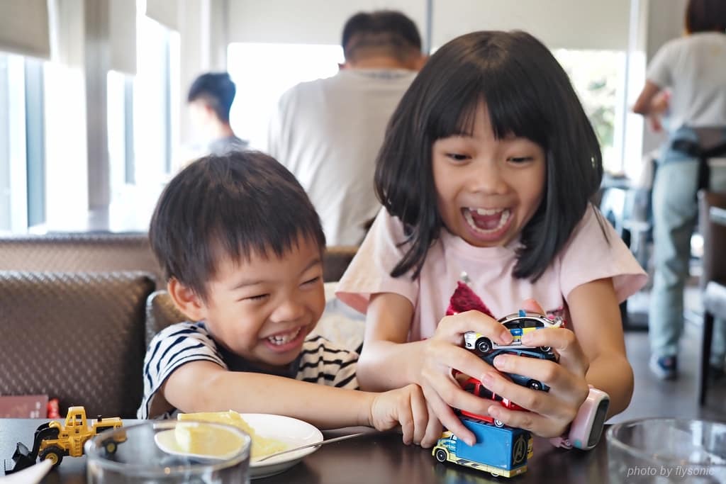 ▲用餐環境舒適,小孩把拿出汽車來玩得很開心。