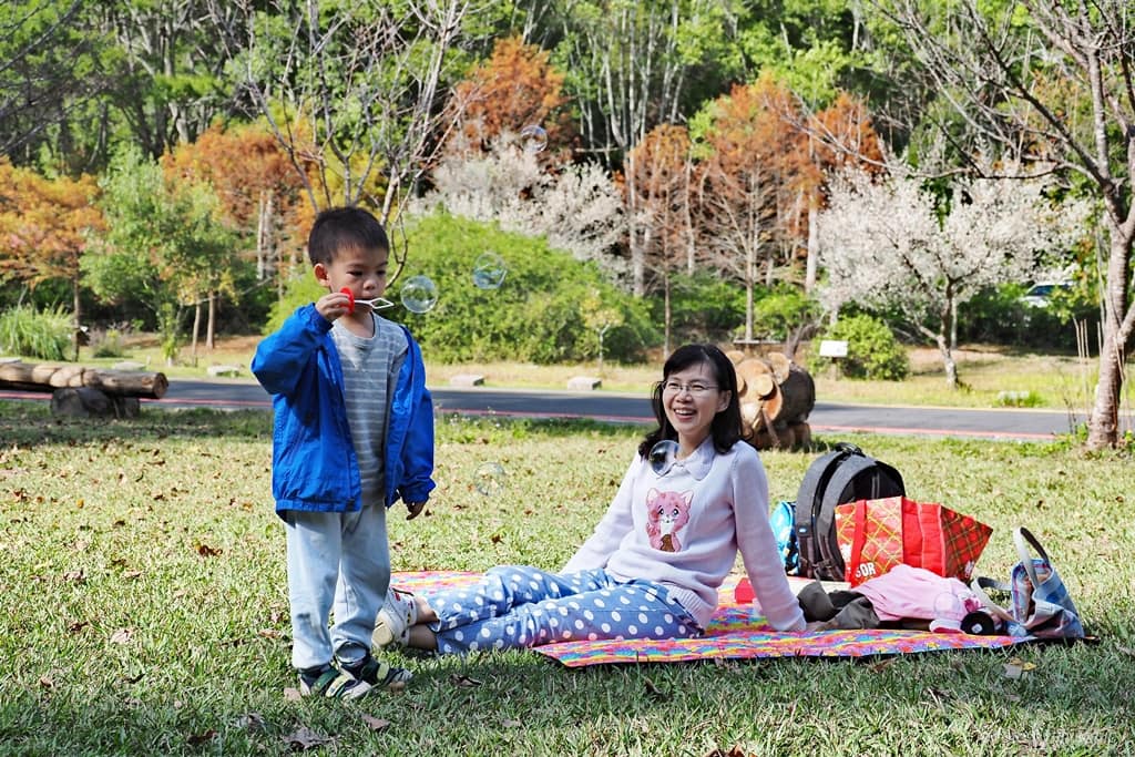 ▲由於惠蓀林場的商店販賣的東西都大多是餅乾糖果類,只有一些滷味、茶葉蛋,口味比較重,孩子不愛。我們這次就準備一些壽司、飯團、水果、飲料,直接在大草皮野餐。
