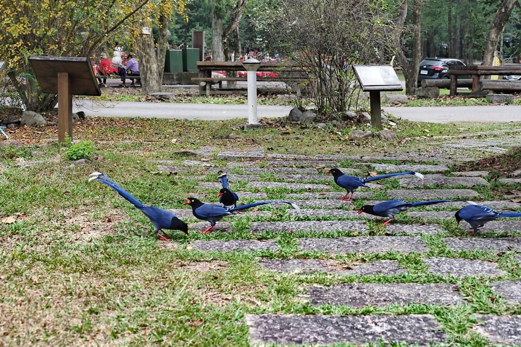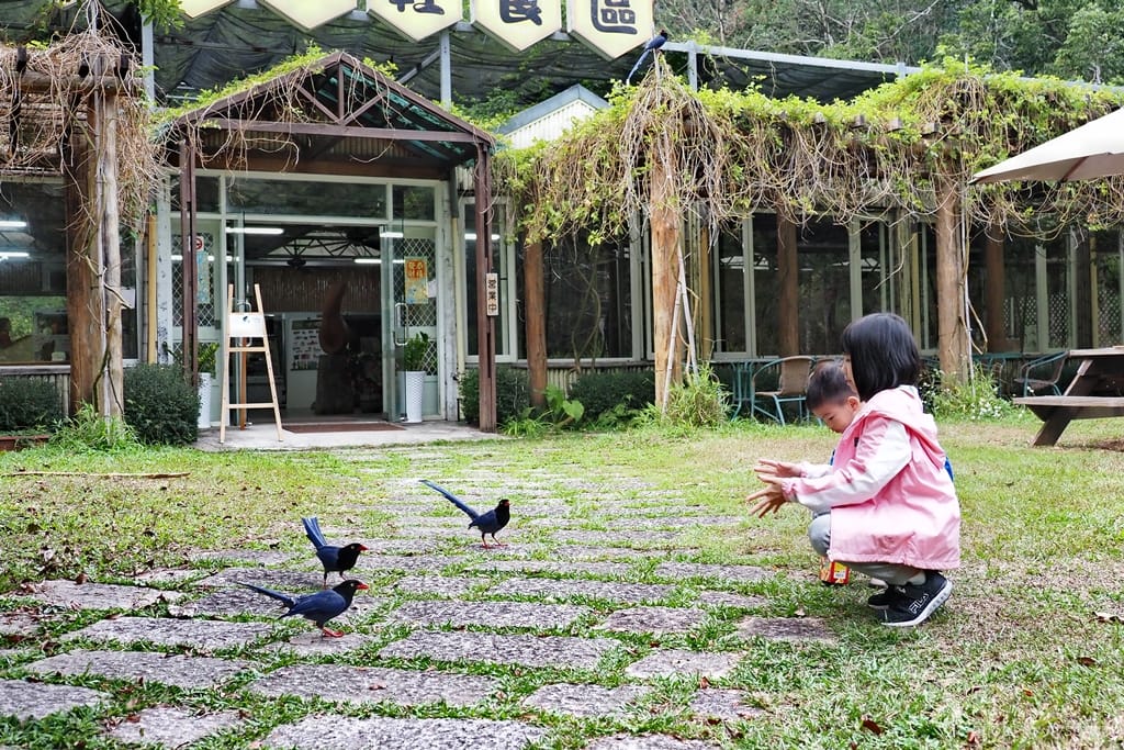 台灣藍鵲一般不容易見到,在惠蓀林場卻很容易發現,而咖啡學堂附近的雞群們成群結隊散步的景象,讓孩子們印象深刻,因此我們還會一而再再而三的回訪這個有趣的地方。