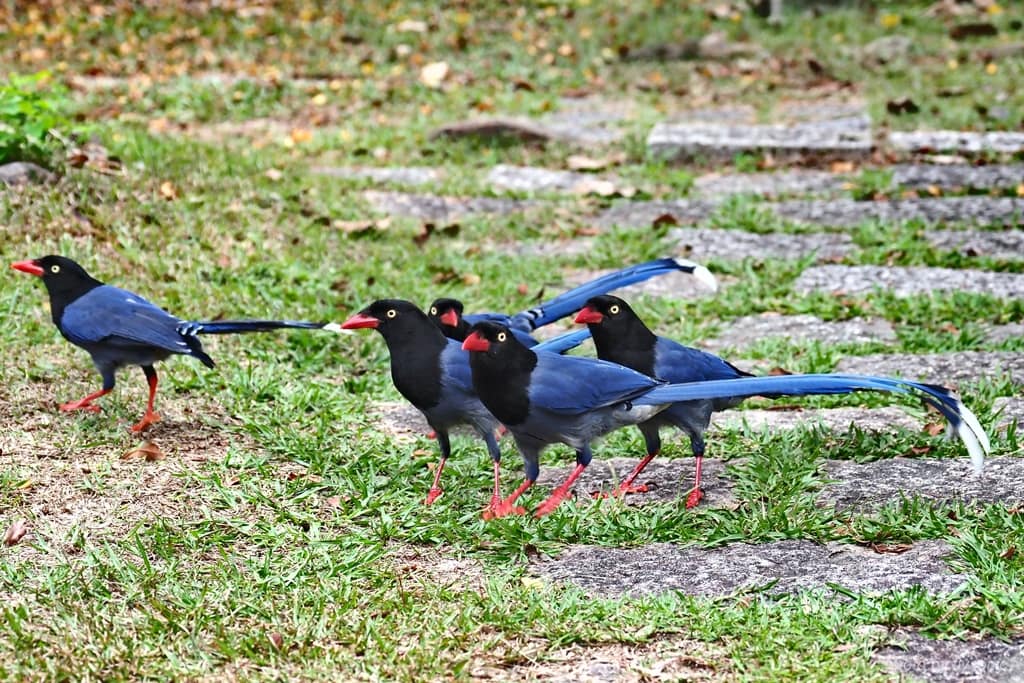 他們生性兇悍,十分愛家,會共同防禦敵人,因此在野外看見一隻台灣藍鵲,附近一定會有一整群。
