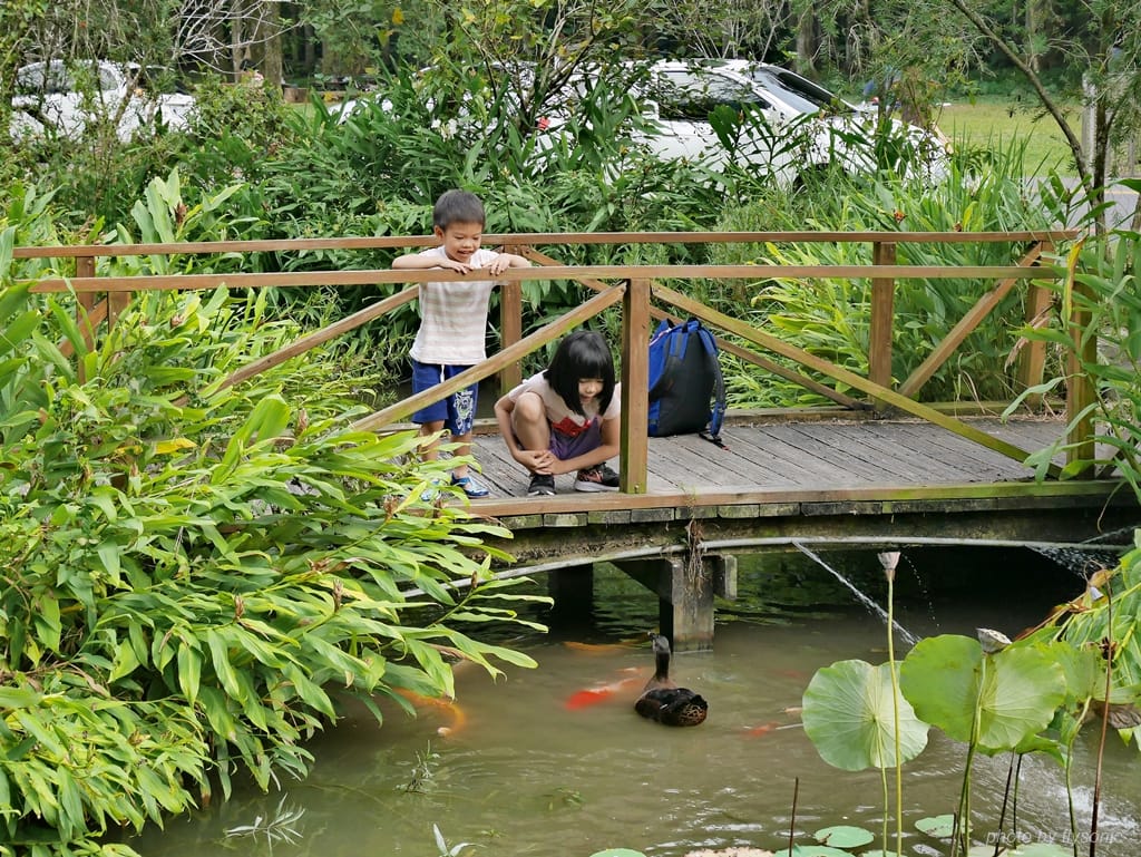 小孩非常喜歡在大草皮這一區玩耍,咖啡學堂、涉水步道、兒童遊樂區、吊床、池塘等等其實就夠他們玩一個下午了。