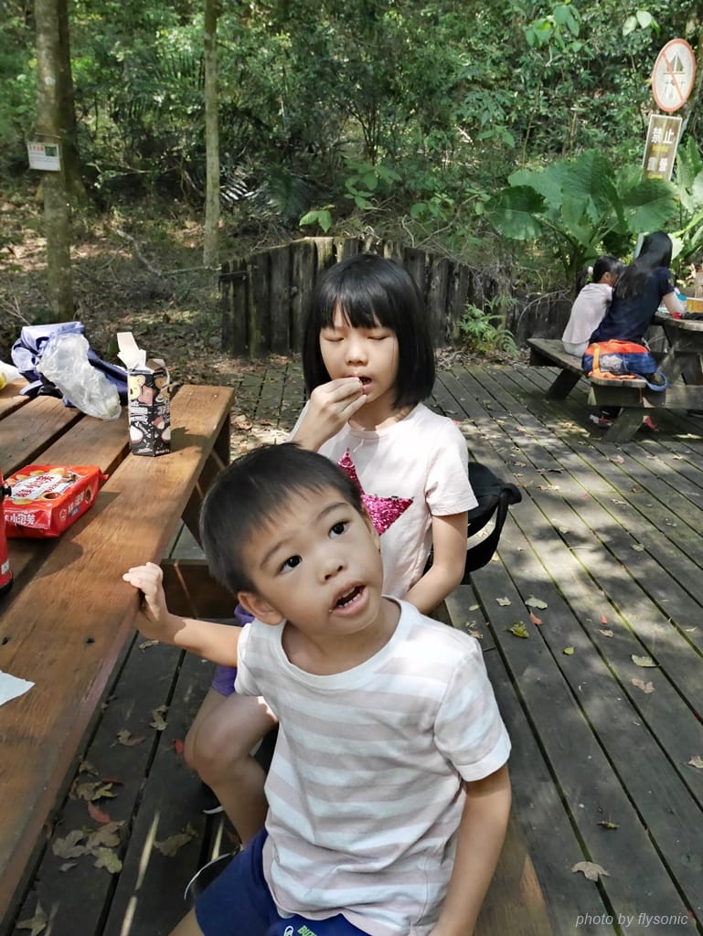 途中有一處兒童遊戲區,有小孩最喜歡的沙坑、溜滑梯、盪鞦韆。