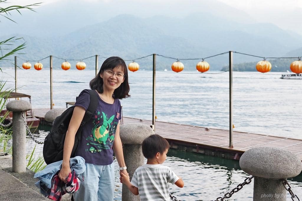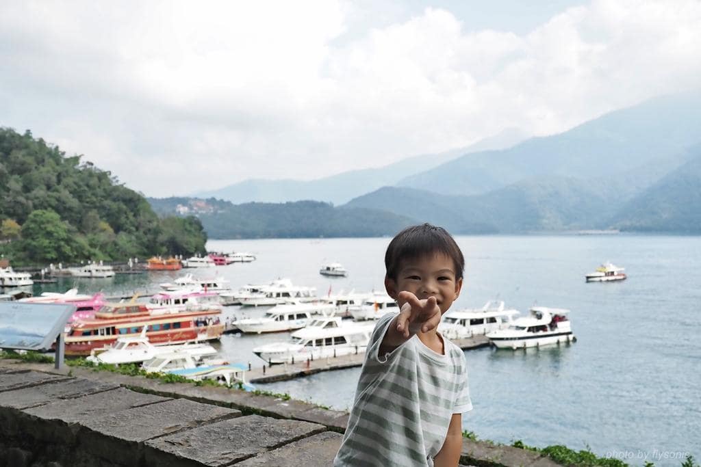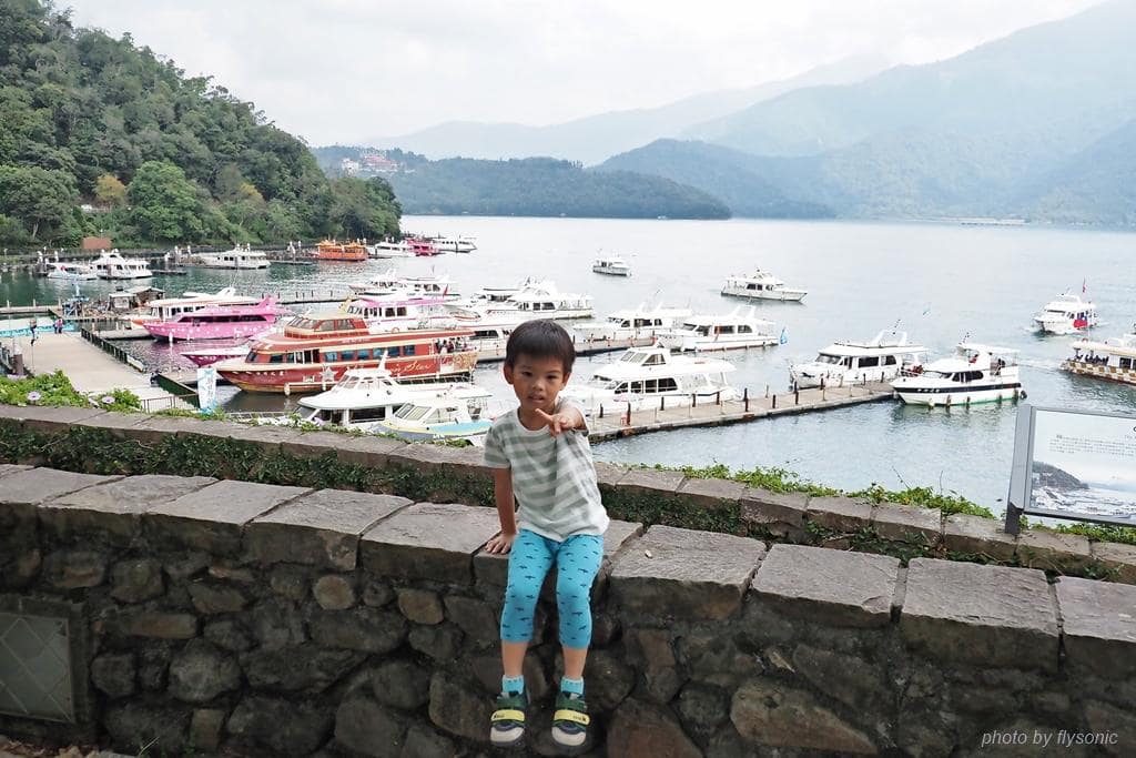 ▲下方是水社碼頭,船隻來來去去,兒子看得很開心。