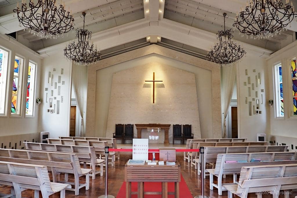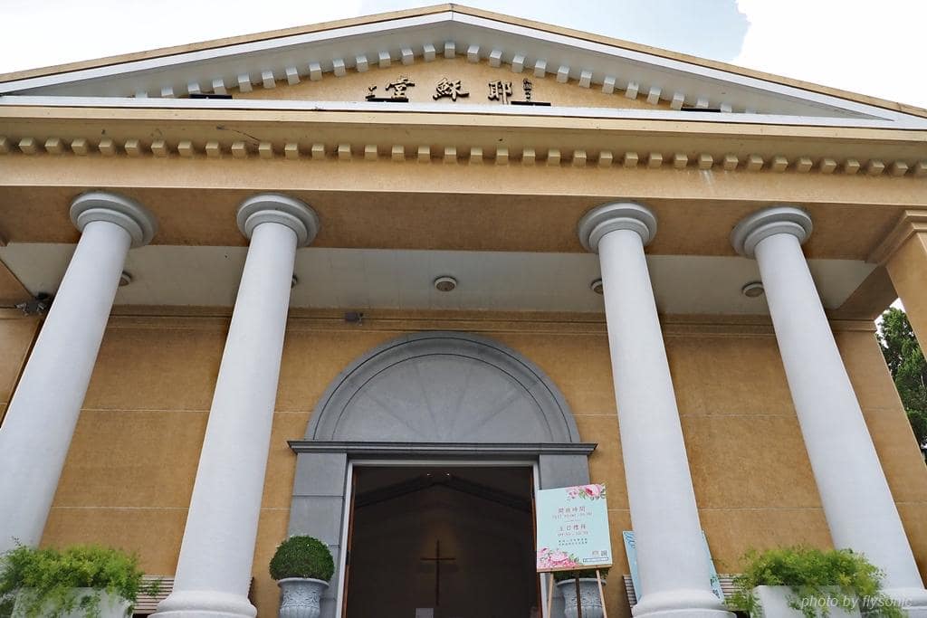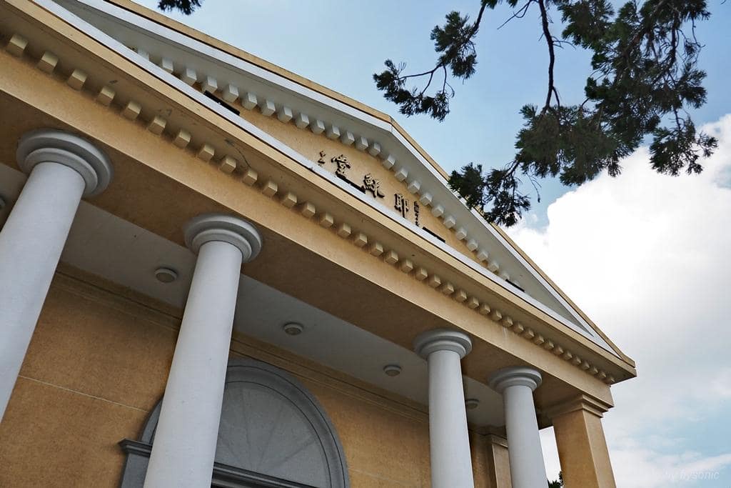 ▲黃牆白柱的古典外觀,相當漂亮,是先總統蔣公為了在日月潭度假時也能夠做禮拜,於 1971年興建的教堂。建成後,蔣公與夫人經常來做禮拜,沒有對外開放。九二一大地震時,外圍龜裂,多年後經過整修才開放給民眾參觀。