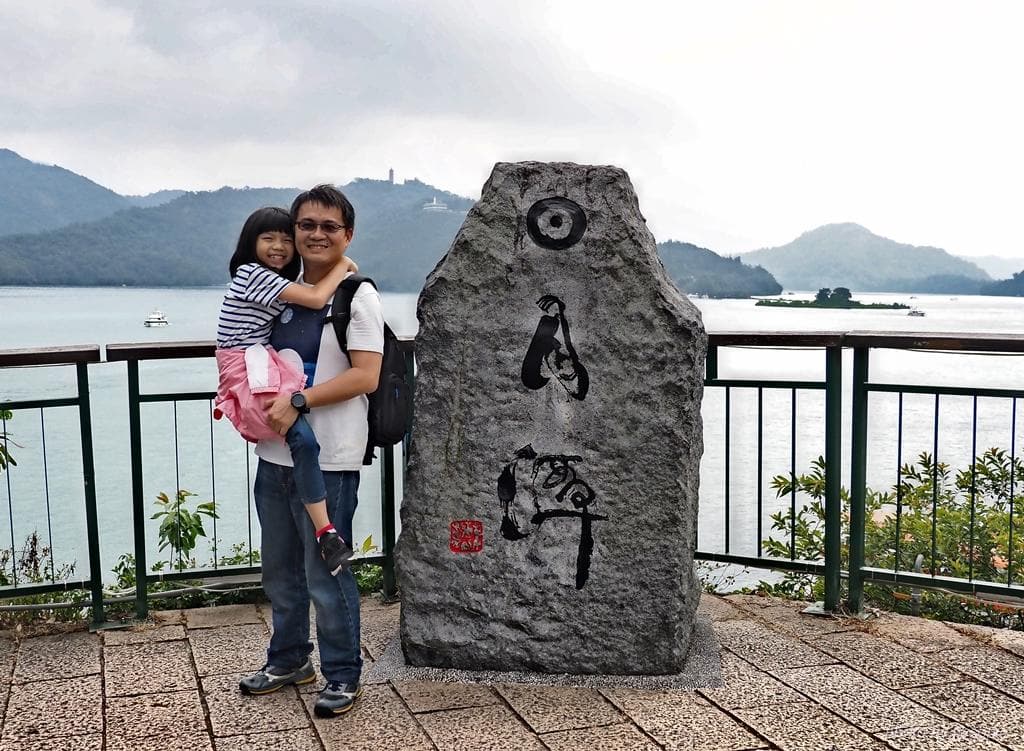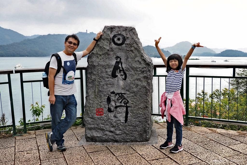 ▲我們走到旁邊的日月潭石碑拍照留念。日月潭有好幾處景點都立有石碑,蒐集起來改天列出來比較一下。