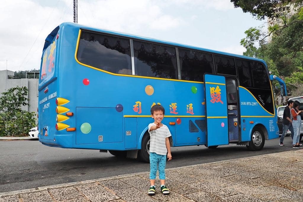 ▲兒子發現一台遊覽車,吵著一定要跟巴士拍照。