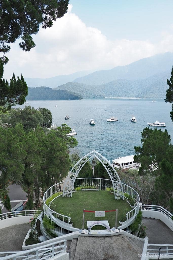 ▲從教堂高處望向日月潭,美景一覽無遺。