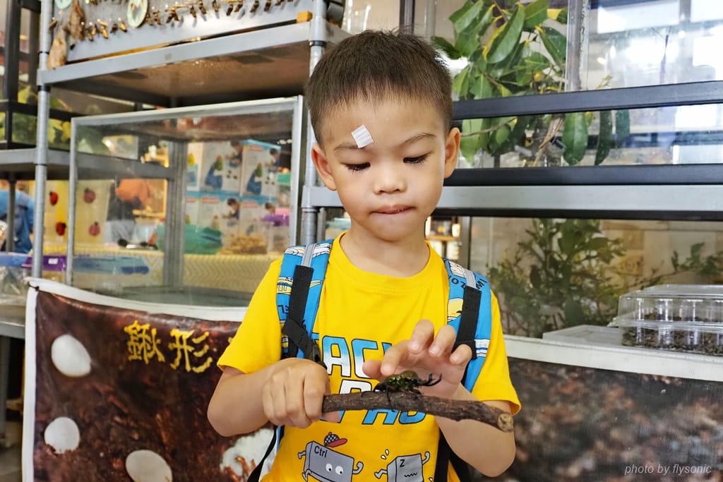 兒子很怕竹節蟲,完全不敢看。他只喜歡館內的甲蟲模型,自己在那邊看了很久。