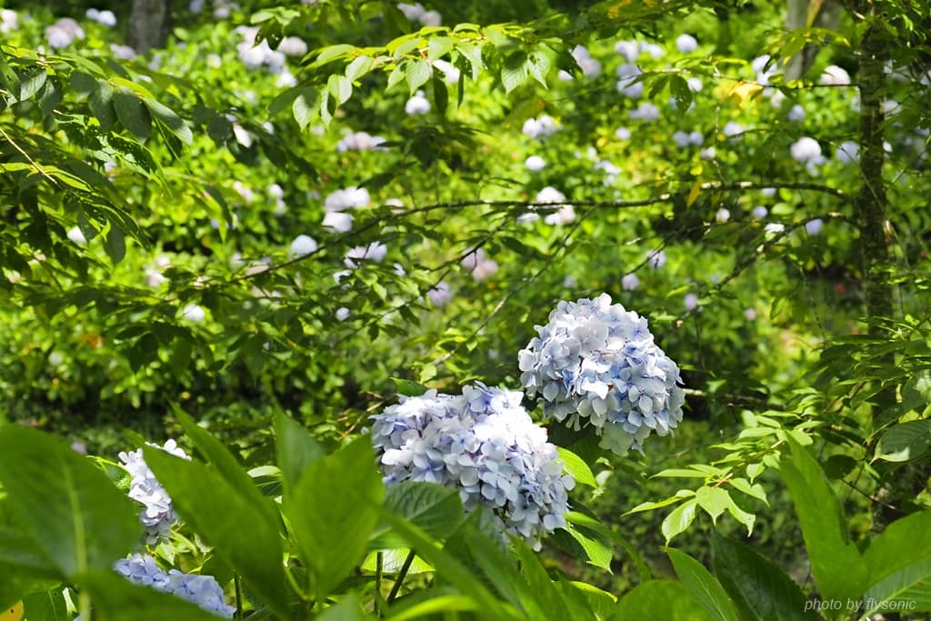 ▲哇!現在還看得到這麼多美麗的繡球花!櫻花林道旁的繡球花以淡淡的粉藍色居多,少少的粉紅色點綴。
